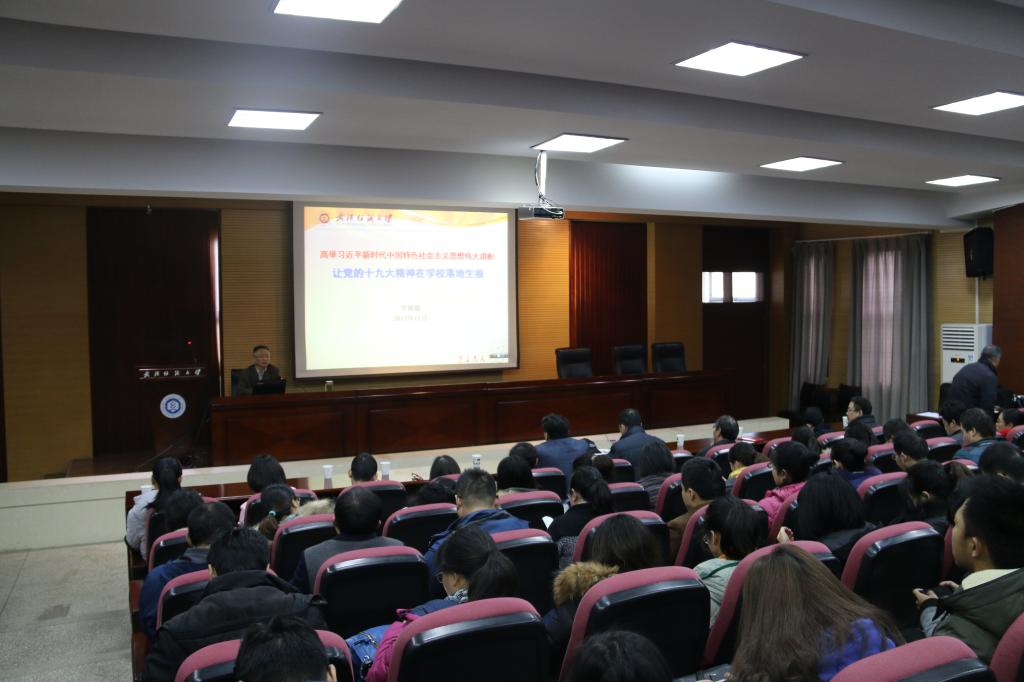 最后,罗校长指出,我们要认真学习领会党的十九大精神,紧密团结在以习近平同志为核心的党中央周围,高举中国特色社会主义伟大旗帜,认真学习贯彻习近平新时代中国特色社会主义思想,锐意进取,埋头苦干,为实现推进现代化建设、完成祖国统一、维护世界和平与促进共同发展三大历史任务,为决胜全面建成小康社会、夺取新时代中国特色社会主义伟大胜利、实现中华民族伟大复兴的中国梦、实现人民对美好生活的向往继续奋斗!