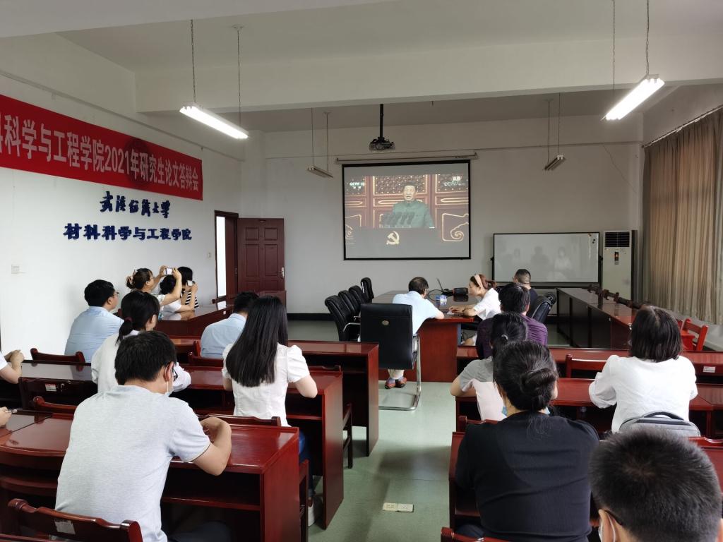 班子成员、全体教师、全体行政人员和学生党员代表在8 F506会议室集中收看网络直播,共同见证举世瞩目的历史时刻。