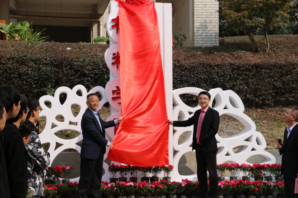 院名揭牌,副校长罗锦银为金总颁发了研究生企业家导师聘书。学院教职工在院名牌前合影留念。