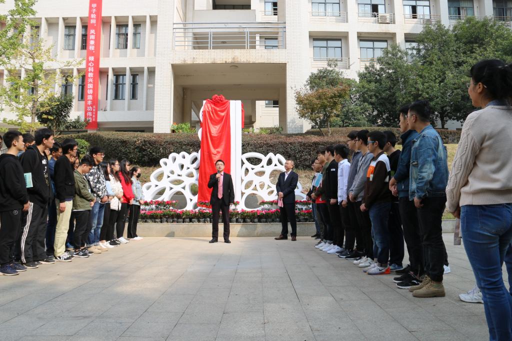 院名牌揭牌仪式在8号教学楼广场举行,副校长罗锦银,浙江迅实科技有限公司总经理金良为院名揭牌,足球投注平台