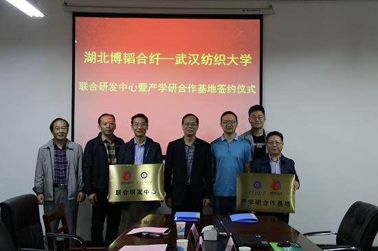 会议室隆重举行,校党委副书记刘在洲、校科技处处长冯军、湖北博韬合纤有限公司总经理张世博、行政总监徐晓洪、业务部主管秦家振、足球投注平台