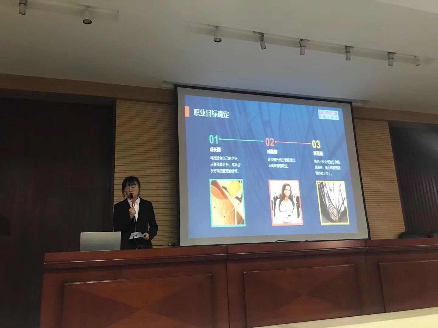 在主持人宣读完本次比赛的流程及评分标准后,参赛选手依次上台进行演讲答辩。比赛中,九位选手依次上台进行了精彩的讲述。他们结合自身情况进行了职业认定、职业选择及职业计划的阐述,评委嘉宾根据实际情况给每位选手给予了详细中肯的建议。答辩环节结束后,湖北大学严蓉副教授对本次比赛进行了点评,她说,各参赛选手紧紧围绕自己的职业规划,在各个比赛环节,充分利用掌握的职业规划知识,展示自己的职业素养与能力,向评委和观众展现了一个个充满个人魅力的未来职业规划蓝图。