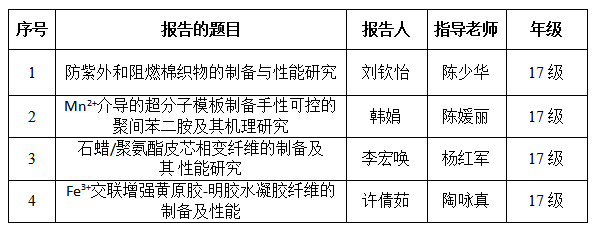 本次论坛旨在鼓励材料类本科生要善于灵活利用化学、化工、材料科学的基础知识解决材料工程问题,利用毕业论文的实施,提高自己的实践和创新能力、工程素养,激发学生自主学习的兴趣。论坛第一期邀请了刘钦怡、韩娟、李宏唤、 许倩茹四位论文答辩取得优异成绩的本科毕业生,他们分别汇报了自己的课题,并与大家分享了学习心得。