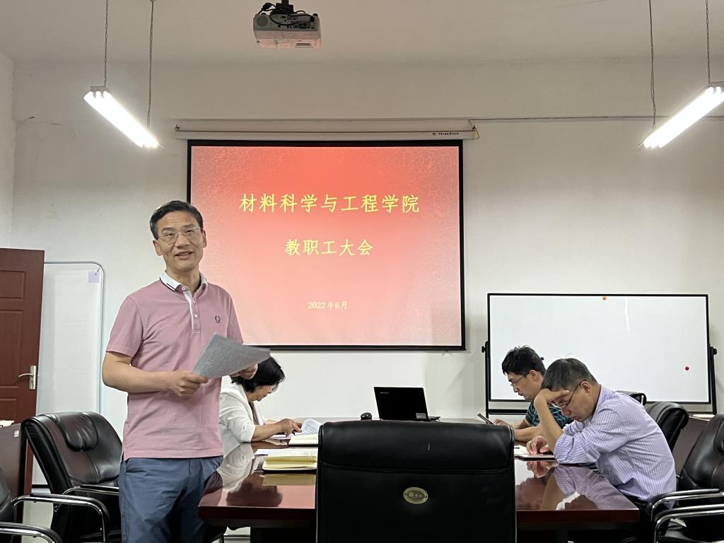 在崇实楼8F506会议室召开全体教职工大会,学习徐卫林院士在学校2022年科技创新大会上的讲话,院长王罗新领学了讲话精神,党委书记陈桂枝做了总结发言。会议由党委书记陈桂枝主持,全体在校教职工参加。