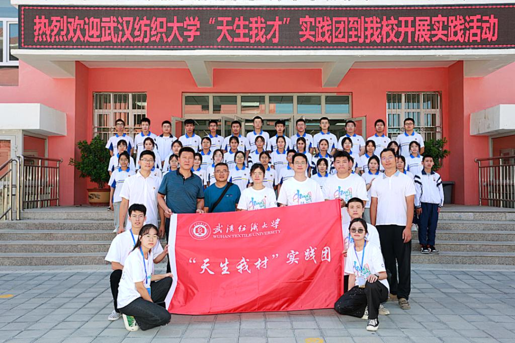 “天生我材”实践团走进新疆维吾尔自治区博州市精河县高级中学开展纺织科普实践活动,为智力援疆、教育援疆贡献纺大力量。实践团队由阳光学者殷先泽教授、谭海英副教授、学院团委书记曾玉竹老师指导,吸纳5名研究生,12名本科生共同组成本、硕、博梯队实践团。实践活动期间,中国工程院院士、武汉纺织大学校长徐卫林亲自对此次实践活动做了现场指导,并与实践团一同参与了科普活动。