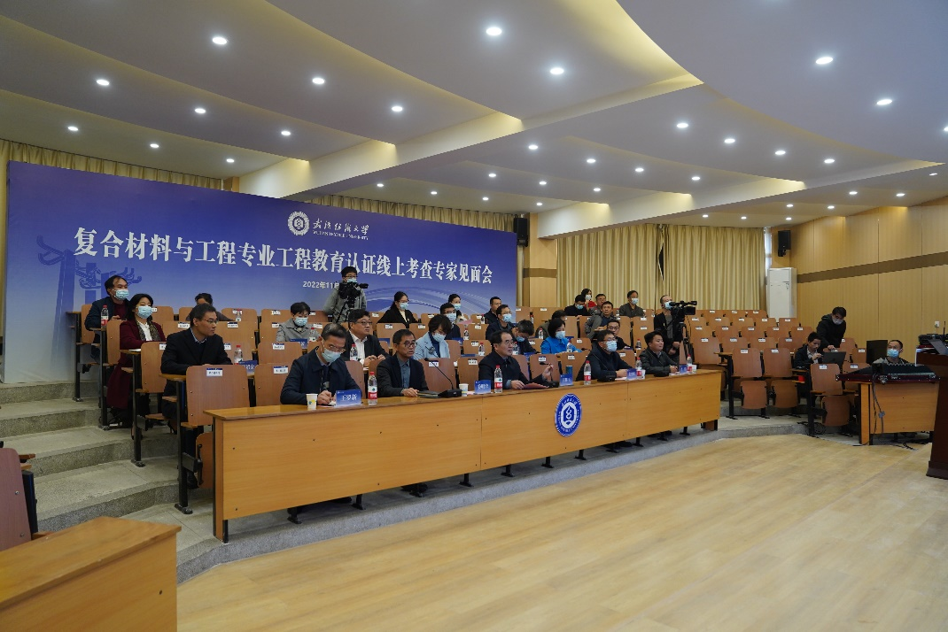 领导班子成员、复合材料与工程专业负责人、复合材料与工程专业专任教师以及相关教学单位分管教学副院长出席会议。见面会分二个阶段进行,第一阶段由姜明华副校长主持,第二阶段由专家组长唐颂超教授主持。