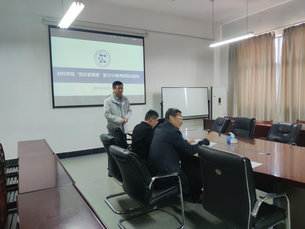 在8F-506会议室举办了“院长答疑课”暨2019级考研复试指导会。王罗新院长、刘欣副院长、辅导员曾玉竹和全体2019级过线同学参加此次会议。会议由党委副书记魏剑主持。