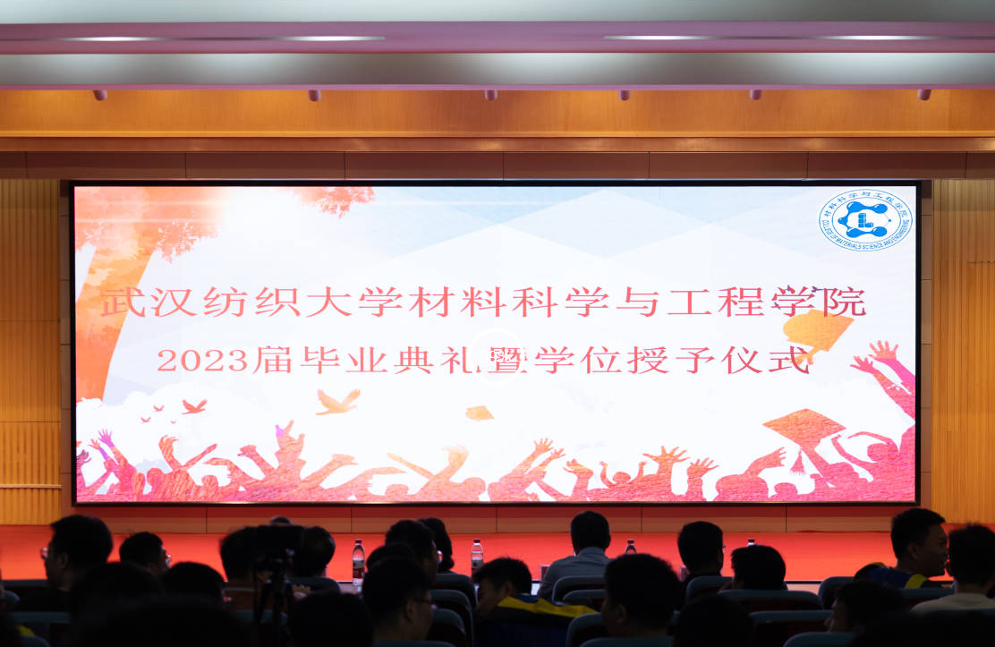 于国际学术报告厅举行2023届毕业典礼暨学位授予仪式。学院党委书记陈桂枝,院长王罗新,副院长顾绍金、刘欣,党委副书记魏剑,复合材料系主任孙九霄,教师代表谭海英,辅导员王鑫、曾玉竹、毛成兴、胡晓及2023届全体毕业生参加活动。