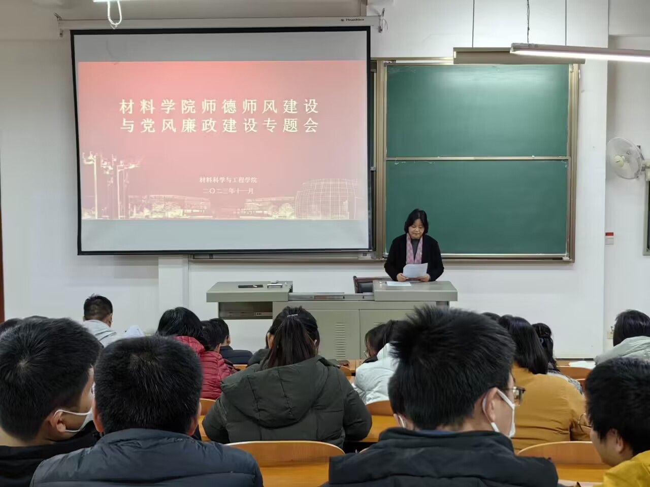 在8F201召开师德师风建设与党员廉政建设专题会,全体教职工参加会议,会议由学院党委书记陈桂枝主持。