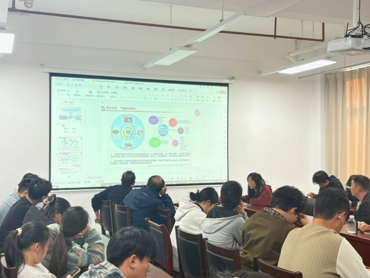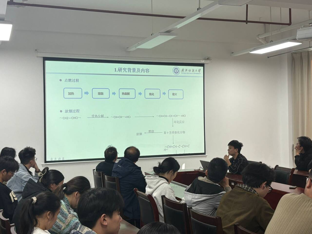 承办,许杰、邓波两位教师担任指导评委。学院硕士研究生舍梦婷、谢威、高飞宇三位同学围绕“绿色功能材料与结构复合材料”主题,依次汇报了最新科研进展,集中展示了学院在气凝胶隔热材料、低碳混凝土阻燃抑烟材料等方向的前沿探索成果。