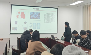 承办,姜伟、张春华两位老师担任轮值老师。学院研究生付翔、冯敏元、吴云灿、戚广营四位同学分别围绕太阳能蒸发器、人造血管定型工艺、无铅钙钛矿材料、光热超疏水涂层等前沿方向进行了精彩汇报,全面展现了学院在能源材料、生物材料、光电材料及功能涂层等领域的创新进展与科研实力,为师生搭建了高质量的学术交流与成果转化平台。