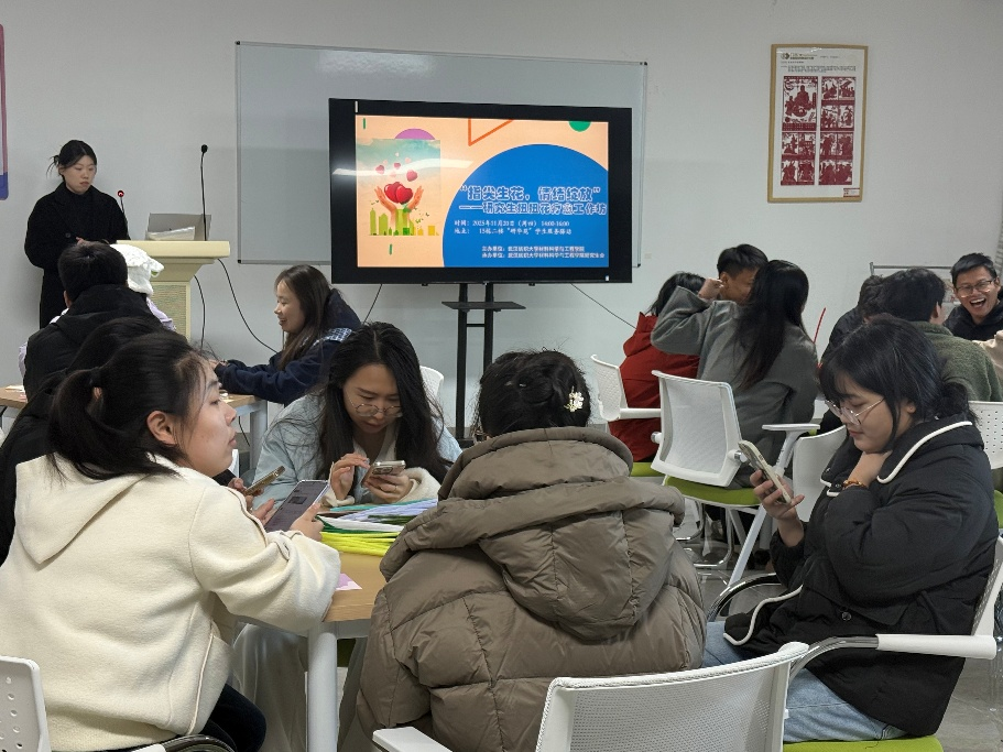 承办的“指尖生花,情绪绽放”研究生手工创作心理主题活动在15栋“研华苑”学生服务驿站温情举办。本次活动吸引了全校各学院研究生积极参与,通过手作与倾诉相结合的方式,为同学们带来了一场别开生面的心灵疗愈之旅。