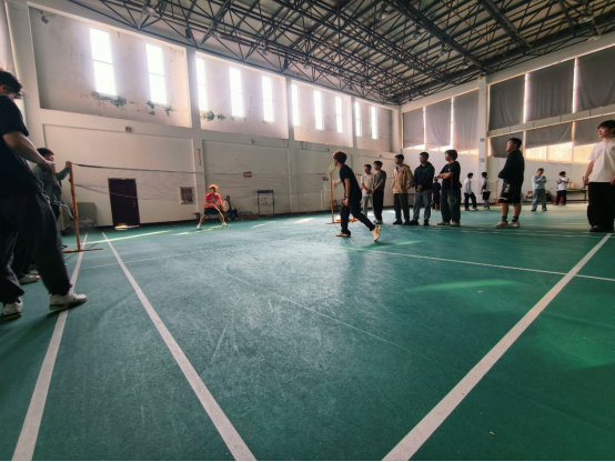 研究生导学思政羽毛球交流赛在大学生活动中心羽毛球馆顺利举行。本次活动由学院主办、院研究生会具体承办,面向全院各年级研究生,旨在以“羽球会友,聚力同行”为主题,搭建导学思政与体育交流相融合的平台,丰富研究生课余生活,增进同门情谊,营造积极健康的校园氛围。
