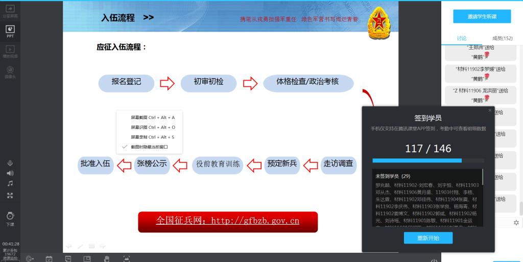 此次征兵宣传活动,由各年级辅导员主持,通过网络主题班会的形式向同学们精准详细宣传了入伍相关政策及流程,帮助同学们算清政治账、经济账、发展账,引导鼓励材料学子尤其是毕业生携笔从戎,勇于担当,积极报名参军,建功军营。