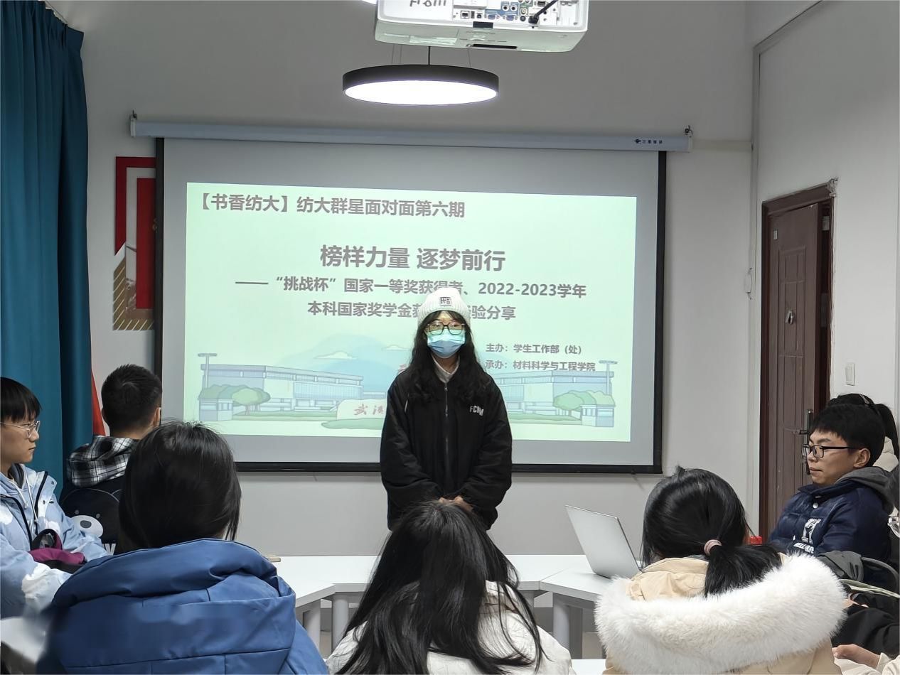 在“天生我材”学生成长服务站举办了第六期纺大群星面对面,“榜样力量 逐梦前行”--优秀学子经验分享活动。活动邀请了“挑战杯”国家一等奖获得者王佳琪、2022-2023学年本科国家奖学金获得者王梓龙、程翠主讲,足球投注平台