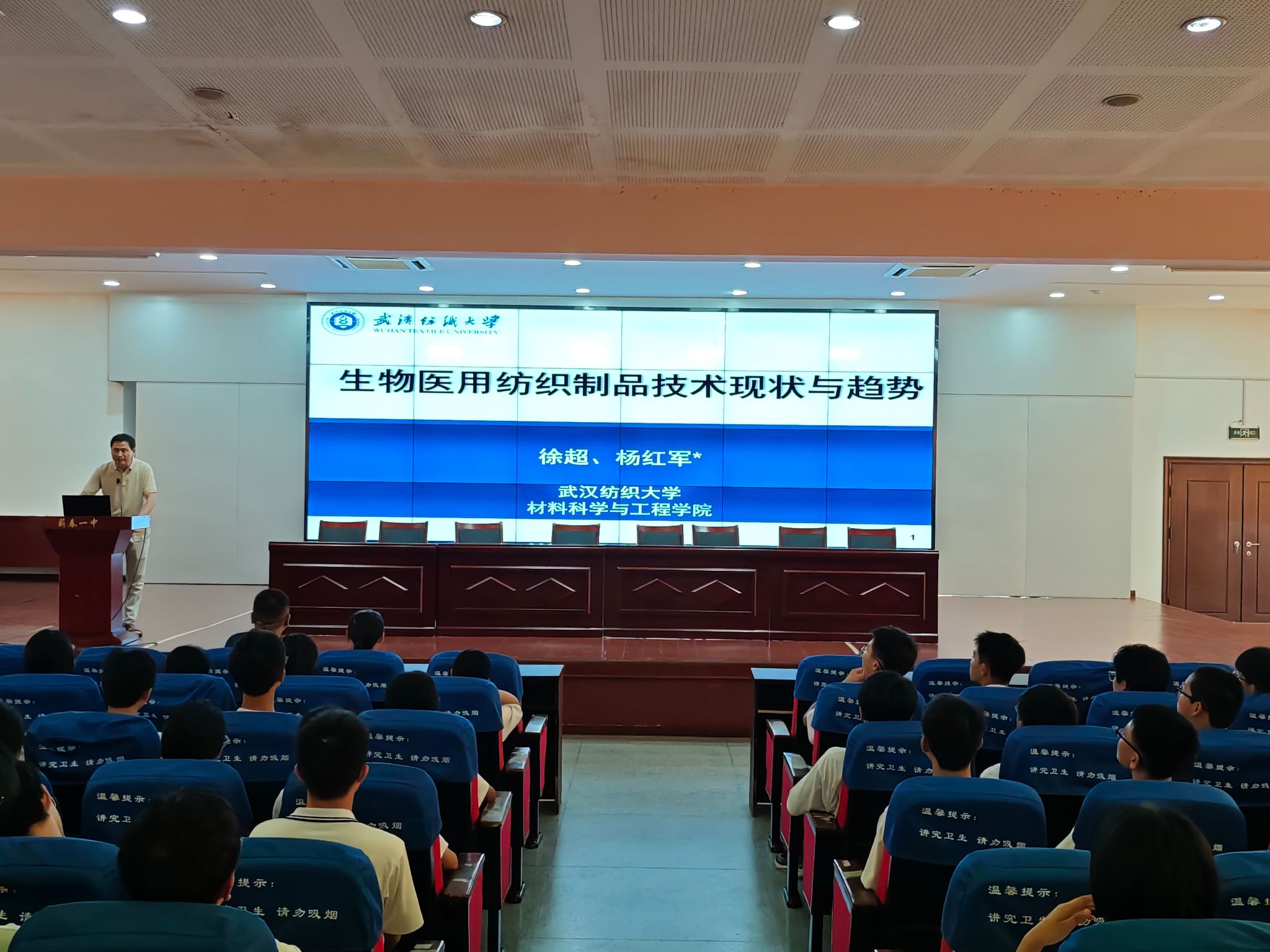 在蕲春一中报告厅,我院专业教师徐超博士为学生主讲名为《生物医用纺织品技术现状与趋势》的科普讲座。徐超从纤维材料在生物医疗领域中的应用、生物医用纺织制品与人类健康、生物医用纺织制品及其分类、生物医用纺织制品的现状与趋势等多个方面展开讲述,让与会学生对纺织科技有了更深的了解,也激发了他们对未来职业规划的思考。“纺织不仅仅是脚踩缝纫机织布啊!原来纺织可以做这么多事情!”一位高一学生听完徐超讲座后如此感叹。